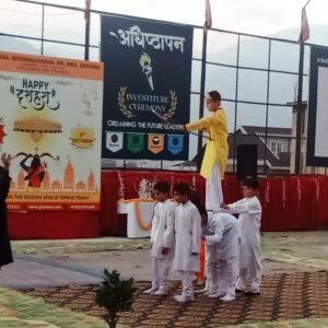 समारोह की शुरुआत माँ सरस्वती की वंदना और दीप प्रज्वलन से हुई, जिसके बाद बच्चों ने अपने रंग-बिरंगे परिधानों और सजीव अभिनय के माध्यम से रामायण की झलकियाँ प्रस्तुत कीं। इन प्रस्तुतियों में राम, सीता, लक्ष्मण और रावण के पात्रों को अत्यंत प्रभावशाली ढंग से दर्शाया गया, जिसने उपस्थित दर्शकों को मंत्रमुग्ध कर दिया। इसके अलावा विद्यार्थियों ने पारंपरिक और आधुनिक नृत्य प्रस्तुत किए, जिनमें लोकनृत्य और समूह नृत्य विशेष रूप से आकर्षक रहे। बच्चों के हर्षोल्लासपूर्ण प्रस्तुतियों ने न केवल दशहरे के पावन संदेश को जीवंत किया बल्कि यह भी दिखाया कि सांस्कृतिक गतिविधियाँ विद्यार्थियों में आत्मविश्वास और टीम वर्क की भावना को प्रोत्साहित करती हैं।
