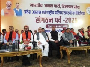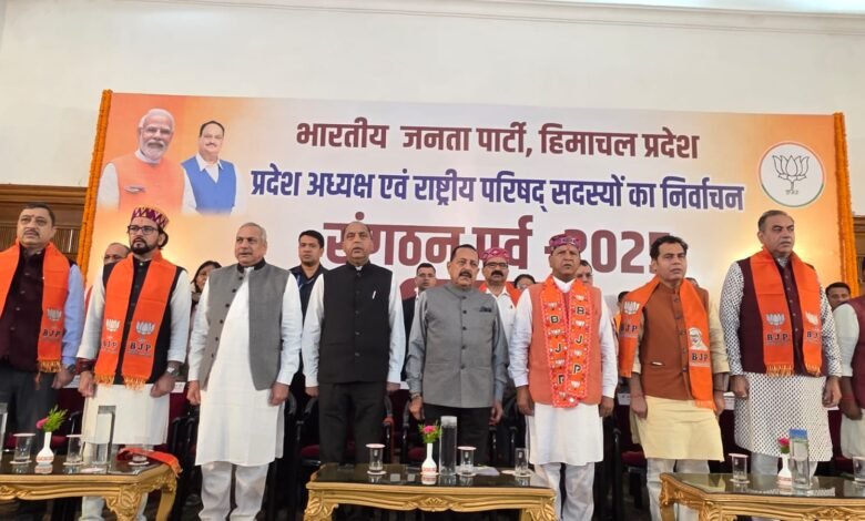 भारतीय जनता पार्टी प्रदेश अध्यक्ष एवं राष्ट्रीय परिषद सदस्यों का निर्वाचन के कार्यकम का आयोजन संगठन पर्व -2025 के अंतर्गत होटल पीटरहॉफ में हुआ, कार्यक्रम में भाजपा प्रदेश अध्यक्ष की घोषणा करने हेतु केंद्र मंत्री जितेंद्र सिंह विशेष रूप से उपस्थित रहे।उनके साथ इस कार्यक्रम में राष्ट्रीय उपाध्यक्ष सौदान सिंह, प्रदेश प्रभारी श्रीकांत शर्मा, सह प्रभारी संजय टंडन, पूर्व केंद्रीय मंत्री अनुराग ठाकुर, पूर्व भाजपा प्रदेश अध्यक्ष सुरेश कश्यप, सतपाल सत्ती, सुरेश भारद्वाज, चुनाव अधिकारी डॉ राजीव भारद्वाज सांसद इंदु गोस्वामी एवं हर्ष महाजन उपस्थित रहे।