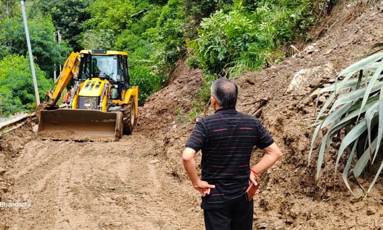 भारी बारिश व भूस्खलन के कारण बंद मुख्य सड़कों को बहाल करने का कार्य युद्ध स्तर पर जारी