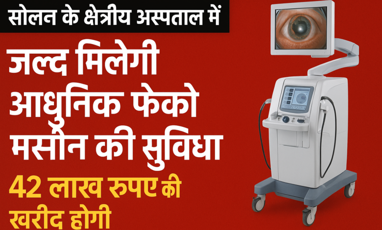 अब सोलन जिला अस्पताल में मोतियाबिंद के मरीजों को आधुनिक उपचार सुविधा मिलने जा रही है। अस्पताल प्रशासन ने 42 लाख रुपये की अत्याधुनिक फेको मशीन खरीदने की प्रक्रिया शुरू कर दी है। मशीन स्थापित होने के बाद आंखों के ऑपरेशन बिना चीरे और टांके के किए जा सकेंगे।