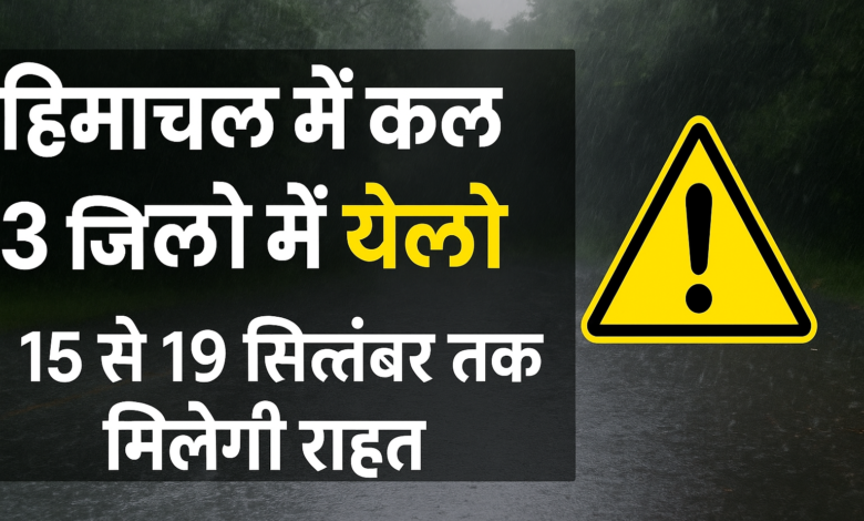हिमाचल में कल 3 जिलों के लिए येलो अलर्ट, 15 से 19 सितंबर तक मिलेगी राहत
